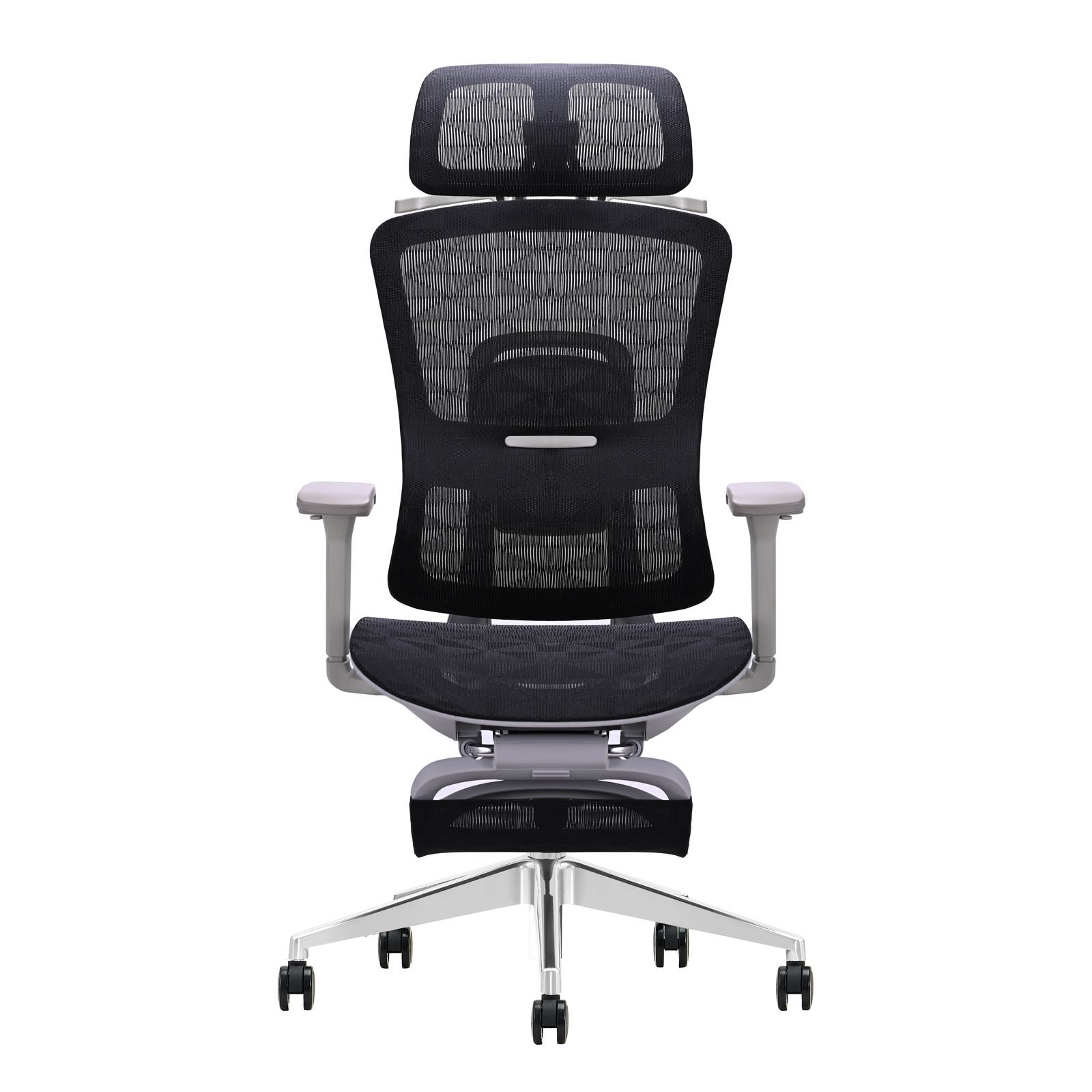 Homer w wykończeniu czarno-szarym łączy siatkowe oparcie i siedzisko, przesuwne siedzisko, podłokietniki 4D, zagłówek 2D oraz mechanizm MULTIBLOCK ELITE-SYNCHRO. Zaprojektowany do wygodnej pracy powyżej 4 h dziennie.