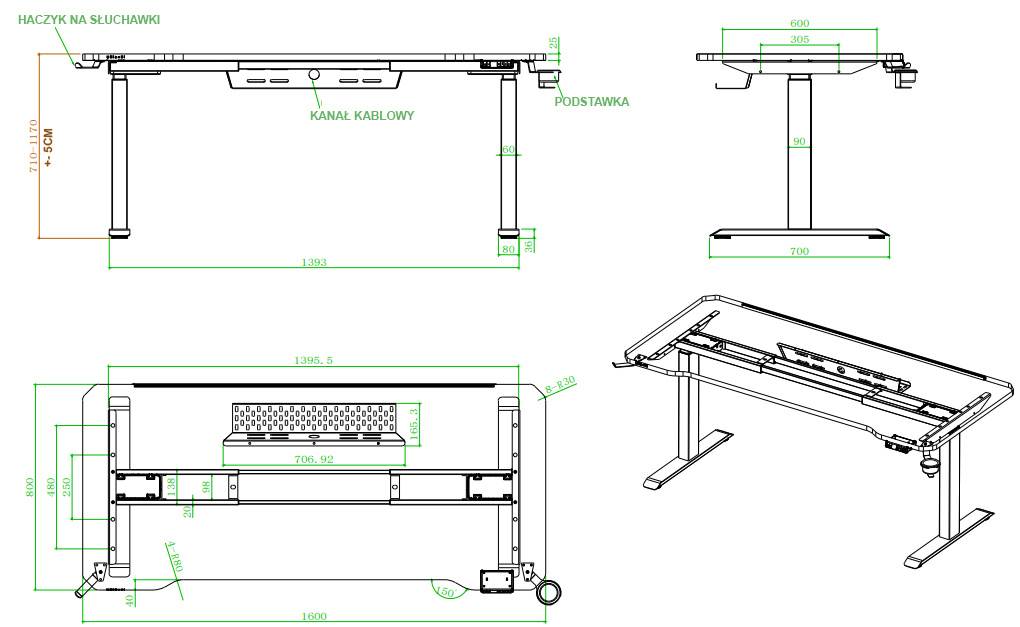Nowoczesny design, wysoka jakość i funkcje, które zadowolą graczy i profesjonalistów. To nie tylko biurko — to Twoje centrum pracy, nauki i rozrywki z elektryczną regulacją 72–117 cm, prędkością 28 mm/s i udźwigiem 120 kg. Do tego USB + USB-C oraz porządek dzięki sprytnemu zarządzaniu kablami.