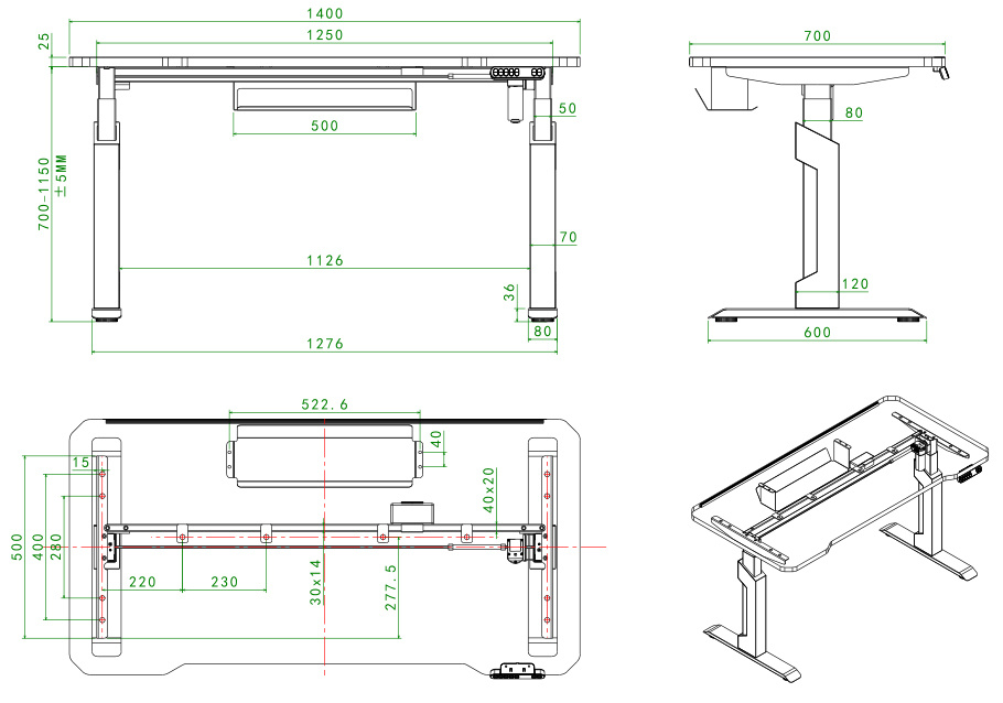 Wystarczy nacisnąć przycisk. Mechanizm podnosi blat z prędkością 22 mm/s, pracując cicho i stabilnie. Zmieniaj pozycję w ciągu dnia, aby zredukować napięcia w plecach i poprawić koncentrację.
