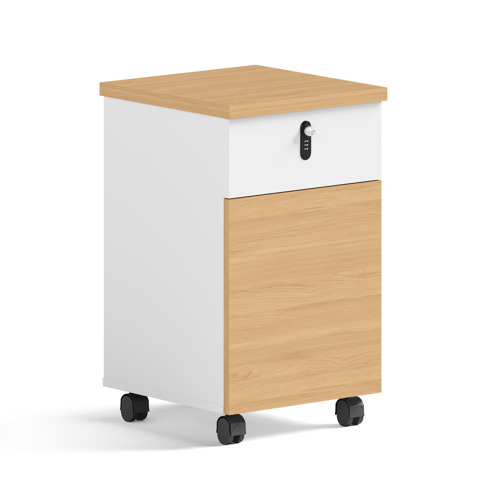 Jedna szuflada na akcesoria i dokumenty pod ręką oraz szafka na większe segregatory czy elektronikę. Dzięki kółkom kontener szybko ustawisz tam, gdzie akurat pracujesz.